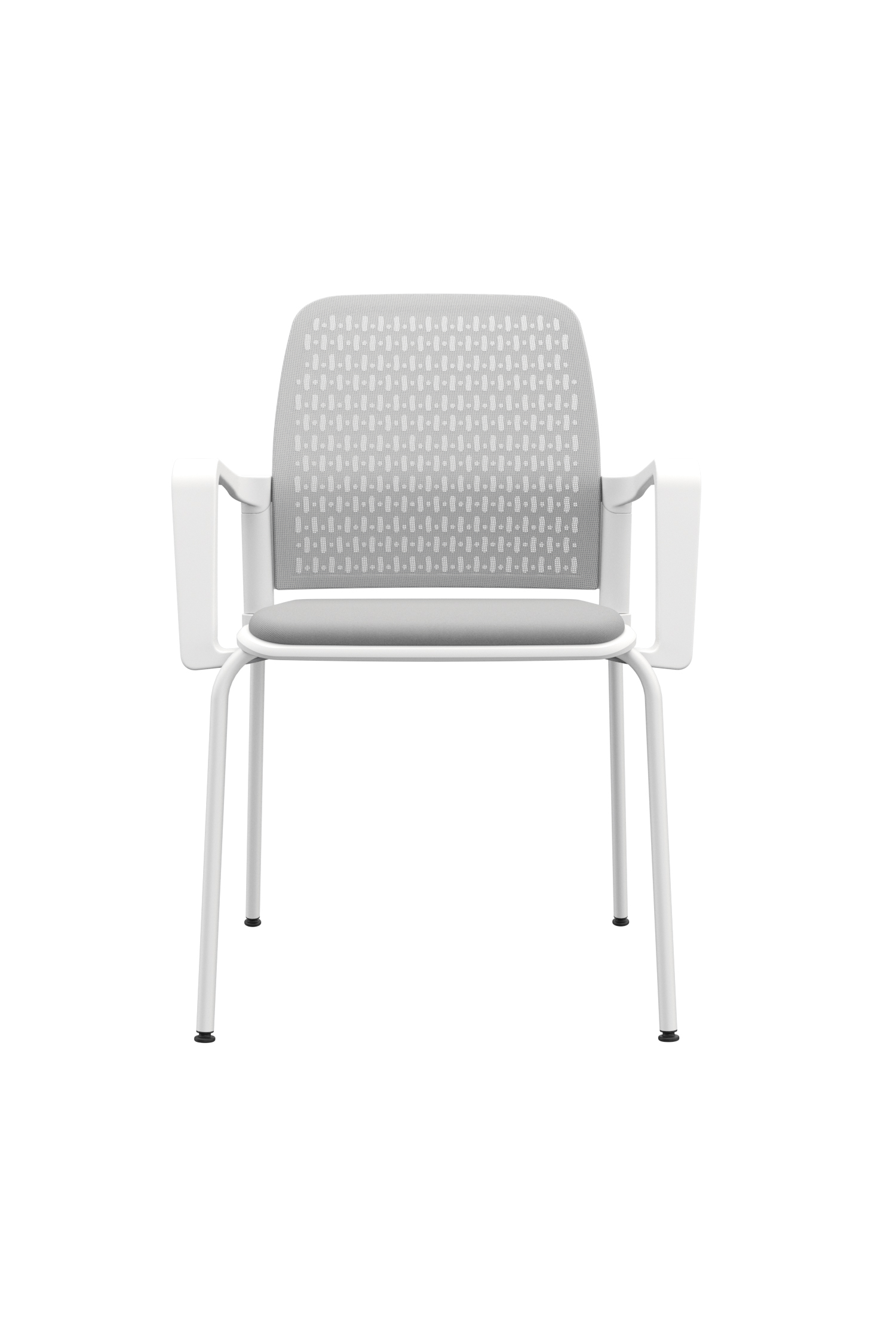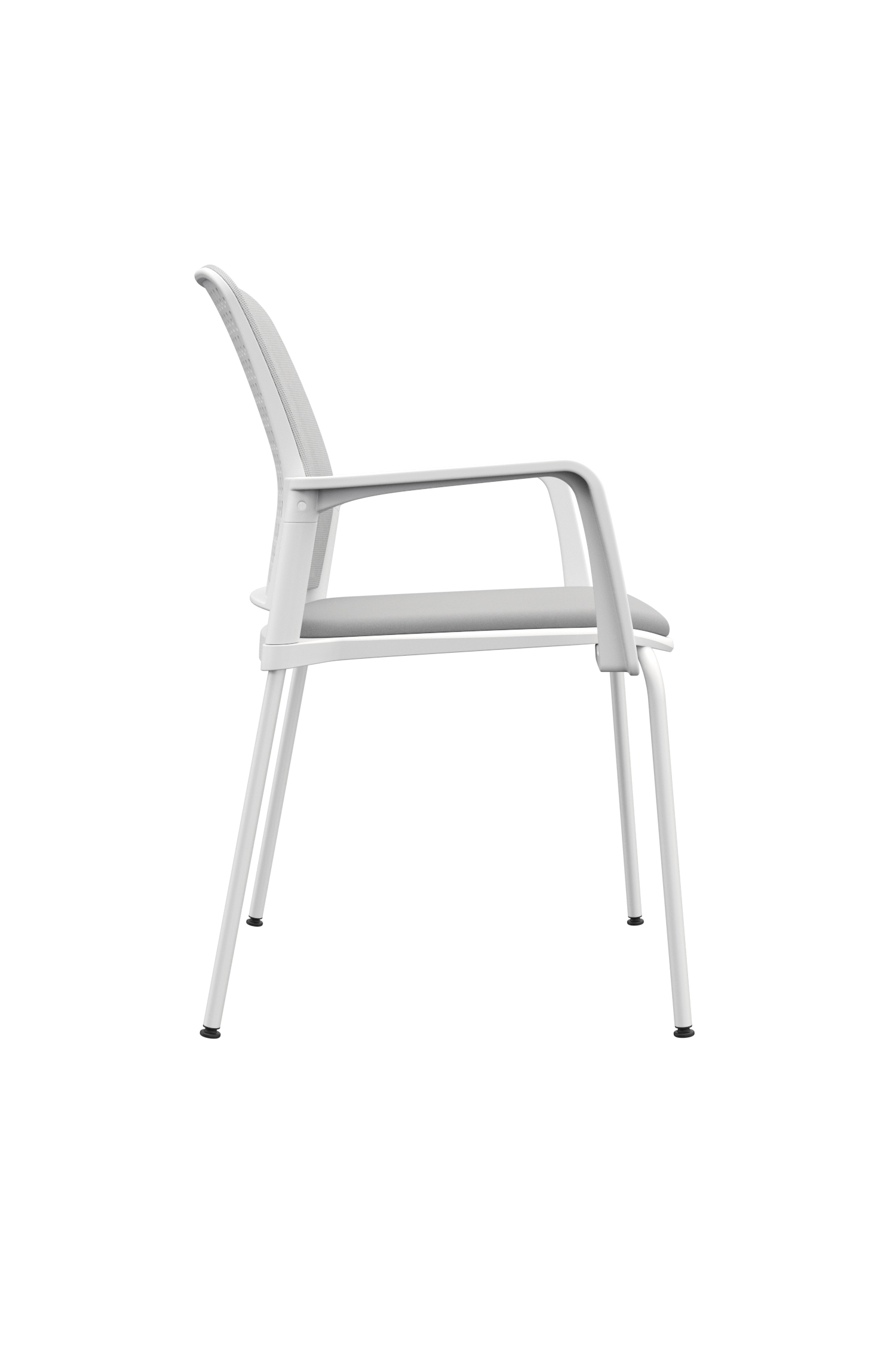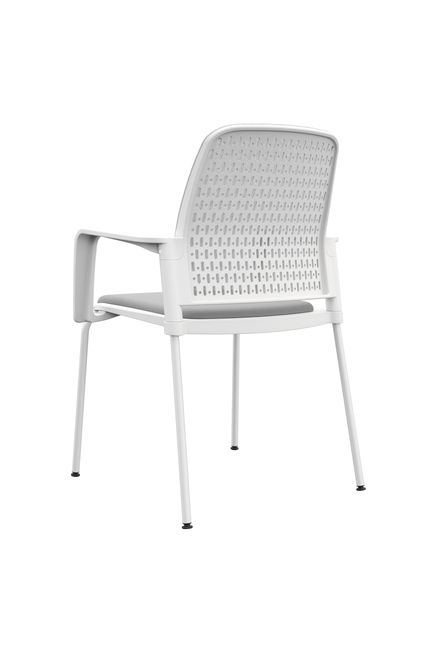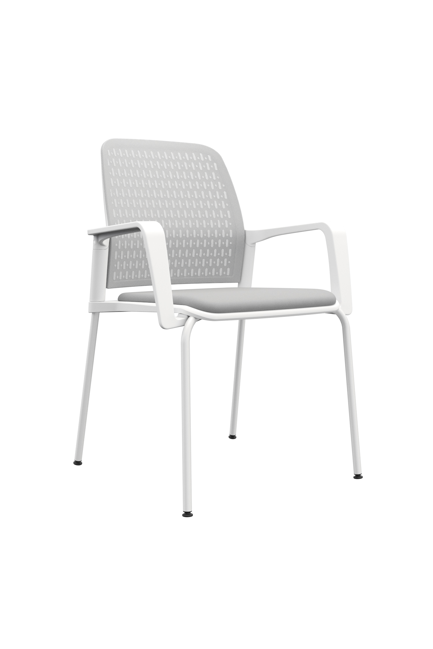 La silla Pinko presenta un espaldar y asiento externo en polipropileno, con espaldar interno tapizado en malla para mayor confort. El asiento laminado cuenta con tapizado en paño, y los brazos fijos están inyectados también en polipropileno. Su base de cuatro patas metálicas incorpora niveladores y puede encontrarse en versiones con marco negro y estructura cromada con tapiz negro; marco blanco y estructura blanca con tapiz gris; o marco gris con estructura gris y tapiz gris.