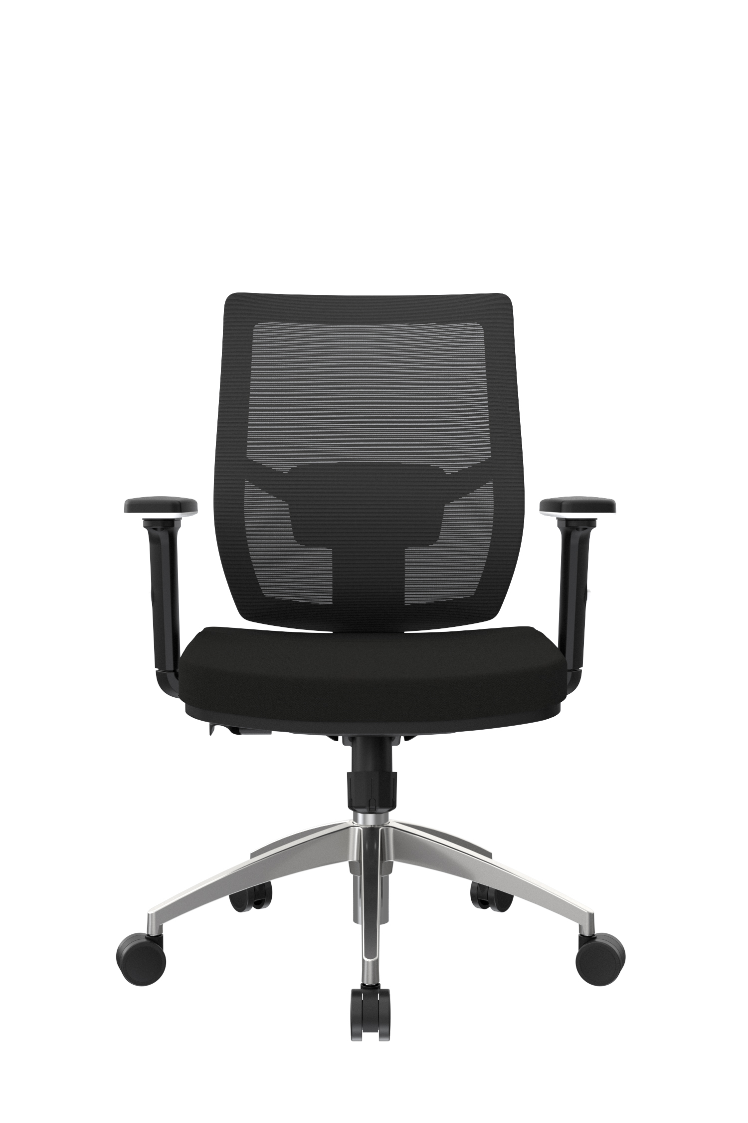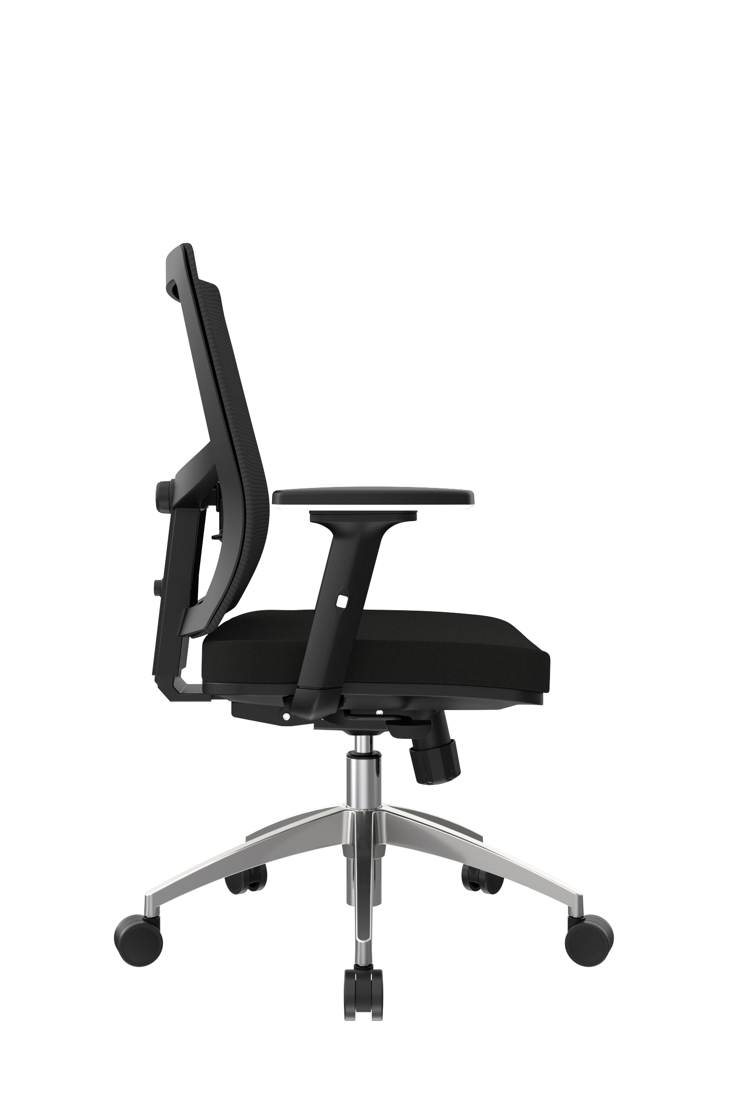 Cuenta con mecanismo syncro de cuatro posiciones de bloqueo o sistema basculante, ambos con antishock, slider y perilla de tensión, asegurando un movimiento fluido y controlado. La estructura admite distintas configuraciones de base, manteniendo estabilidad y desplazamiento suave mediante ruedas en goma PU de 50 mm. Es una solución pensada para espacios de trabajo dinámicos, donde la ergonomía y la funcionalidad son clave.